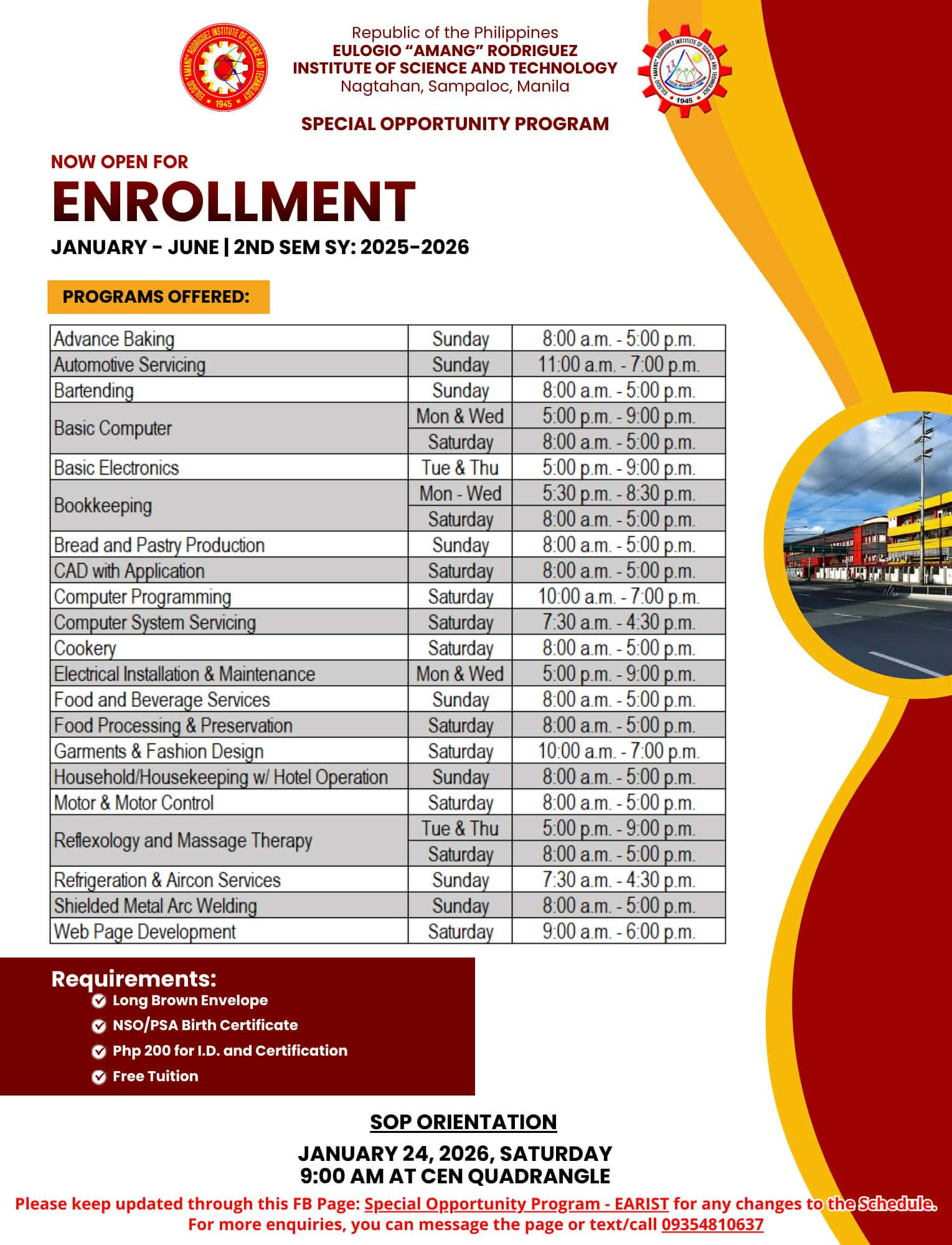 We are thrilled to share some exciting developments that are set to elevate the educational experience and opportunities for all members of our EARIST family. As we embark on this new chapter, we remain committed to our mission of fostering academic excellence, holistic growth, and a strong sense of community.